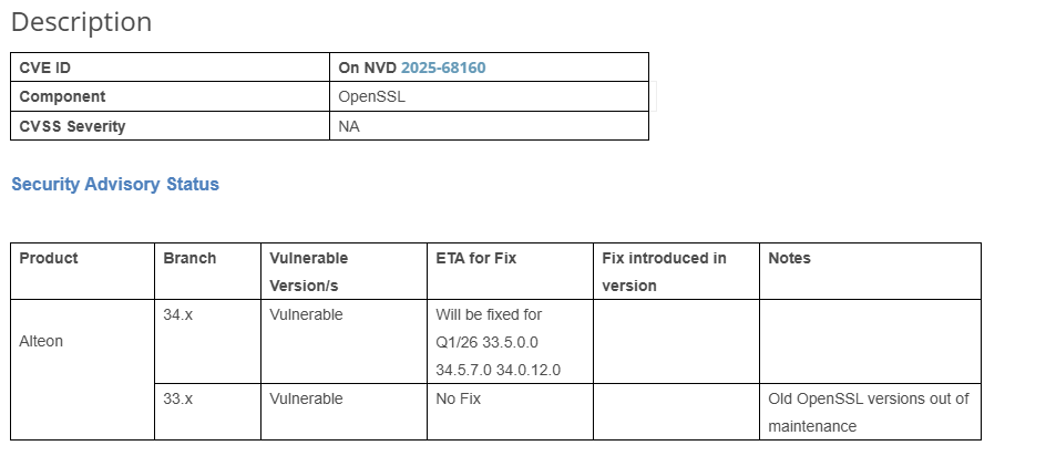 CVE 2025-68160, OpenSSL, CVSS NA / 26.02.01 인쇄